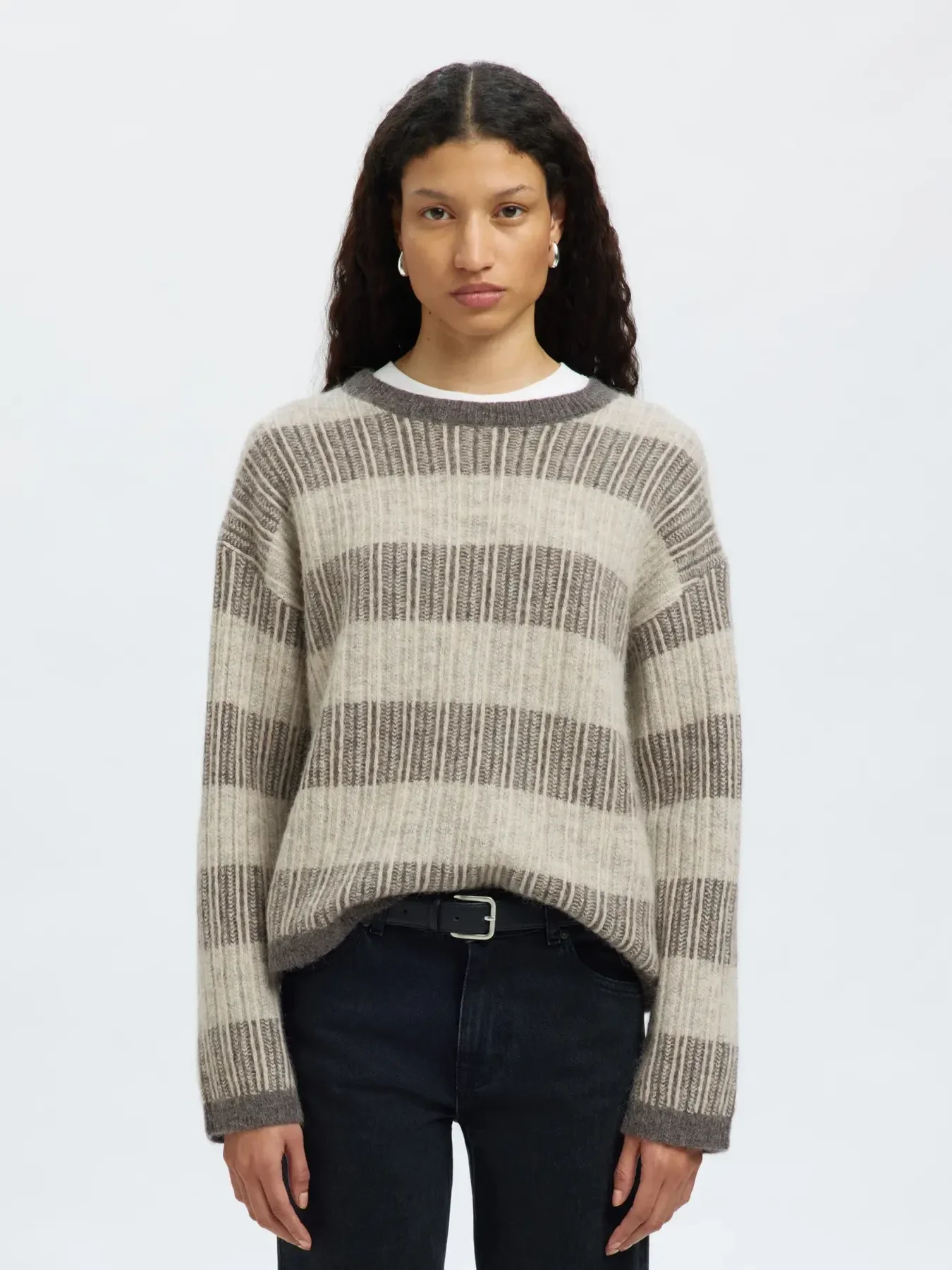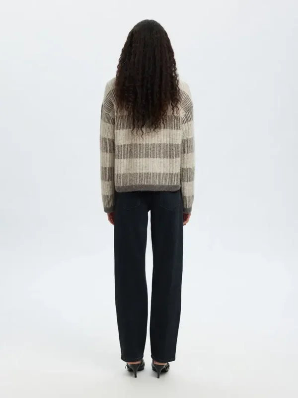 LS knit stripe O-neck